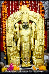 मेवाड़ की एकमात्र 3 फीट की चारभुजा नाथ की प्रतिमा जिसमें 10 अवतार बने हुए हैं माहेश्वरी समाज श्री चारभुजा जी बड़ा मंदिर में चारभुजा नाथ के लगभग 8.25 किलो स्वर्ण व रजत पोशाक ट्रस्ट द्वारा बनाई गई है इसमें कुल 750 ग्राम सोना यानी 75 तोला सोना एवं साढे सात किलो चांदी से निर्मित पोशाक स्वर्णिम चतुर्भुज