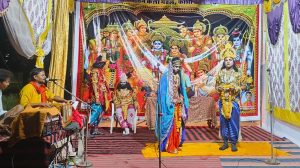 भीलवाड़ा ( बलराम वैष्णव ):- सवाईपुर क्षेत्र के बड़लियास कस्बे में स्थित बड़े चारभुजा नाथ मंदिर प्रांगण में आयोजित रामलीला में बुधवार रात्रि को सीताराम के विवाह के साथ ही, लक्ष्मण परशुराम के संवाद का मंचन किया गया । बड़े चारभुजा नाथ मंदिर प्रांगण पर उत्तर प्रदेश के हिंदू सत्य सनातन कला मंडल काशी प्रयाग के कलाकारों द्वारा संगीतमय रामलीला का मंचन किया जा रहा है, जिसमें पांचवें दिन बुधवार रात्रि को जब प्रभु रामचंद्र जनकपुर में भगवान भोलेनाथ अजगव पिनाक का खंडन करते हैं उसी समय महेंद्र गिरी पर्वत पर परशुराम तपस्या कर रहे होते हैं, उनका ध्यान भंग हो जाता है और वह ध्यान लगाकर देखते हैं जैसे ही उन्हें ज्ञात होता है की उनके द्वारा रखी हुई शिव धनुष का खंडन हो चुका है तुरंत जनकपुर आते हैं तभी सभी राजा अपना अपना परिचय देकर प्रणाम करते हैं और फिर जनक प्रणाम करते हैं, माता सीता को प्रणाम करते हैं फिर विश्वामित्र महाराज आकर गले मिलते हैं और राम लक्ष्मण भी परशुराम जी को प्रणाम करते हैं, तभी परशुराम जी जनक जी से पूछते हैं की है जनक कि तुम्हारे राज्य में आज देश देशांतर के राजा गण क्यों पधारे हुए हैं तब जनक जी बताते हैं कि हे भगवान आज हमारी पुत्री सीता का स्वयंवर है अचानक भगवान परशुराम का ध्यान शिव धनुष पर पहुंचता है और वह पूछते हैं की शिव धनुष का खंडन करने वाला कौन है उसको इस सभा से अलग कर दो अन्यथा एक के धोखे में सभी राजा मारे जाएंगे, तभी प्रभु रामचंद्र कहते हैं कि हे भगवान जिसने भी शिव धनुष का खंडन किया है वह शिव का प्यार और आपका दास ही हो सकता है कहिए उसके लिए क्या आज्ञा है तब परशुराम जी कहते हैं कि वह मेरा दास नहीं हो सकता, जिसने ऐसा दुस्साहस किया है वह सहस्त्रबाहु के समान मेरा शत्रु है तब लक्ष्मण कहते हैं कि हे भगवान मैंने तो बचपन में ऐसी बहुत सी धनुष तोड़ दिया, तब आप इतना क्रोध नहीं किया, इस धनुष में ऐसी कौन सी ममता है कि आप इतना क्रोध कर रहे हैं, तभी के परशुराम जी राम जी से कहते हैं की है राम अगर तुम सचमुच में राम के पति राम हो तो को यह धनुष जिससे मैं नौ गुण में चाहता हूं और तुम बारह गुण में चढ़ा कर मेरा संदेश दूर करो फिर भगवान परशुराम अपने आश्रम के लिए वापस चले जाते हैं और इधर महाराज जनक जी दूत भेज कर महाराज दशरथ को बुलवाते हैं कुलरीति के अनुसार सीता राम शुभ विवाह संपन्न करते हैं ।।