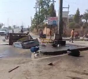 भीलवाड़ा( बलराम वैष्णव ):- नेशनल हाईवे 758 पर अगरपुरा के कोटडी चौराहे पर आज दोपहर बाद एक तेज रफ्तार स्कार्पियो ने आगे चल रही कार को टक्कर मार दी, जिसमें कार अनियंत्रित होकर कचोरी के ठेले से टकराई, जिसमें ठेला मालिक पिता पुत्र घायल हो गए, घायलों को जिला चिकित्सालय में भर्ती करवाया गया, सूचना पर सदर थाना पुलिस मौके पर पहुंची । एएसआई भंवरलाल अहीर ने बताया कि अगरपुरा के कोटडी चौराहे पर एक तेज रफ्तार स्कार्पियो ने आगे चल रही कार को जबरदस्त टक्कर मार दी, जिसमें के बाद कार अनियंत्रित होकर कचोरी के ठेले से जा टकराई, जिसमें कार व कचोरी का ठेला बुरी तरह से क्षतिग्रस्त हो गये । वहीं ठेले पर काम कर रहे ठेला मालिक सुवाणा निवासी राजू पिता भेरु जाट व पुत्र भावेश घायल हो गये, घायल पिता पुत्र को जिला चिकित्सालय में भर्ती करवाया गया, जहां इलाज जारी है । वही स्कॉर्पियो टक्कर मारने के बाद मौके से फरार हो गई, बड़ी संख्या में ग्रामीण व राहगीरी मौके पर जमा हो गए, ग्रामीणों ने इसकी सूचना सदर थाना पुलिस को दी, सूचना पर पुलिस जाप्ता मौके पहुंचा ।।