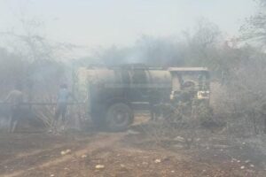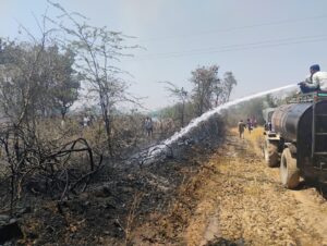 भीलवाड़ा ( बलराम वैष्णव ):- क्षेत्र के बड़लियास कस्बे के धाकडों की झोपड़ियां गांव में विद्युत पोल पर शॉर्ट सर्किट के चलते एक खेत व बीड़े में आग लग गई, आग की चपेट में आने से आधा बीघा गेहूं की फसल जलकर राख हो गई, सूचना पर दमकल व बड़लियास थाना पुलिस मौके पर पहुंची । दीवान बजरंग लाल ने बताया कि धाकडों की झोपड़ियां में विद्युत पोल पर शॉर्ट सर्किट के चलते लादू पिता पोखर रैगर खेत व बीड़े में आग लग गई, आग लगे की सूचना गांव में आग की तरह फैल गई, ग्रामीणों ने तीन-चार पानी के टैंकरों की मदद से आग पर काबू करने का प्रयास किया, वहीं भीलवाड़ा से पहुंची दमकल की मदद से आग पर काबू पाया, तब तक आधा बीघा गेहूं की फसल के साथ एक बीघा बीड़े में पेड़-पौधे, लकड़ियां व चारा जलकर राख हो गया, इस दौरान बड़लियास ग्राम पंचायत प्रशासक प्रकाश चंद्र रेगर सहित बड़ी संख्या में ग्रामीण मौजूद रहे ।।