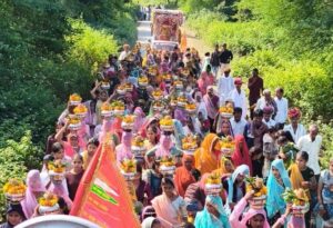 भीलवाड़ा ( बलराम वैष्णव ):- सवाईपुर क्षेत्र के सोपुरा का झुपड़ा में बाबा रामदेव जी की दशमी बंधन वार्षिक तिथि का उद्यापन किया गया । सदस्य कैलाश चंद्र रैगर ने बताया कि 12 महिला सदस्यों द्वारा बाबा रामदेव जी के दसवीं का व्रत उपवास किया, जिसका उद्यापन आज शनिवार को किया गया, इसमें शनिवार प्रातः 7:15 बजे खरेड़ देवनारायण मंदिर से कलश यात्रा प्रारंभ हुई, कलश यात्रा में 51 महिलाएं सिर पर कलश धारण कर कलश यात्रा में शामिल हुई, कलश यात्रा गाजे-बाजे के साथ विभिन्न भागों से होते हुए रैगरों का झुपड़ा सोपुरा में रामदेव जी मंदिर पर पहुंची, इसके बाद दोपहर 1:15 बजे यज्ञ हवन शुरू हुआ, जिसमें यज्ञाचार्य लादूराम आचार्य के वैदिक मंत्रोचार के साथ 11 जोड़ों ने हवन कुंड में आहुतियां लगाई, अंत में महा आरती के साथ दशमी का उद्यापन हुआ । वही प्रसादी का भोग लगाकर प्रसादी वितरण की गई ।।