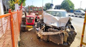 स्विफ्ट कार ने ट्रैक्टर-ट्रॉली के पीछे से मारी टक्कर, चालक घायल