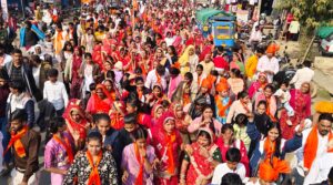 भीलवाड़ा ( बलराम वैष्णव ):- जगतगुरू रामानन्दाचार्य जी महाराज के 726 वें जन्मोत्सव के उपलक्ष पर त्रिवेणी संगम पर वैष्णव बैरागी समाज के द्वारा आज रविवार को विशाल शोभायात्रा निकाली गई, त्रिवेणी संगम पर प्रतिभा सम्मान समारोह के साथ शोभायात्रा का समापन हुआ । निर्मल वैष्णव ने बताया कि समस्त वैष्णव बैरागी समाज मांडलगढ़ व बिजौलियां के द्वारा रविवार को अनन्त विभुषित जगतगुरू श्री रामानन्दाचार्य जी महाराज के 726 वें जन्मोत्सव बड़े ही धूमधाम और हर्षोल्लास के साथ मनाया गया । इस दौरान विशाल शोभायात्रा निकाली गई, शोभायात्रा प्रातः 11:15 बजे से त्रिवेणी संगम से प्रारंभ हुई, शोभायात्रा में बैंड बाजा, मदसौरी ढ़ोल और घोड़े शामिल हुई । शोभायात्रा त्रिवेणी संगम से शुरू होकर पुराना बस स्टैंड, मुख्य बस स्टैंड से होते हुए वापस त्रिवेणी संगम पर पहुंची, जहा जगतगुरू रामानन्दाचार्य जी महाराज की महाआरती की, शोभायात्रा में जगह-जगह पुष्प वर्षा कर स्वागत किया गया, शोभायात्रा में महिलाएं, बालिकाओं व बच्चों ने भक्तिमय भजनों पर झूमने लगे । शोभायात्रा में चारभुजानाथ, हनुमान जी महाराज, त्रिवेणी महादेव के जयकारों का जयघोष किया, शोभायात्रा में वेद विद्यालय के बच्चों व समाज के युवक व बालिकाओं ने अखाड़े का प्रदर्शन किया, जिससे देखकर लोग दांतों तले उंगलियां चबाने को मजबूर हो गए । शोभायात्रा में ऊपर माल, खेराड, मेवाड़ अंचल से बड़ी संख्या में वैष्णव बैरागी समाज के महिला-पुरुष व युवक-युवतियां और बच्चें मौजूद रहे । शोभायात्रा के बाद प्रतिभा सम्मान समारोह का आयोजन किया गया । सम्मान समारोह के मुख्य अतिथि गोपाल खंडेलवाल विधायक मांडलगढ़ रहे । विशिष्ट अतिथि संजय डागी चेयरमैन, राजू बंजारा मंडल अध्यक्ष बिजोलिया, प्रकाश सांगावत मंडल अध्यक्ष नदराय, अशोक जीनगर मंडल अध्यक्ष मांडलगढ़, गोविंद आचार्य वेद विद्यालय के अध्यापक, गोपाल शर्मा, महेंद्र गुर्जर आदि का माला, दुपट्टा व साफा पहनाकर स्वागत किया गया । सम्मान समारोह में 51 छात्र छात्राओं सहित समाज की विभिन्न प्रतिभाओं का प्रशस्ति पत्र व मोमेंटो देकर सम्मानित किया गया । विधायक गोपाल खंडेलवाल ने वैष्णव बैरागी समाज की सराय के लिए 11 लाख की घोषणा की । मंच का संचालन राजेश कुमार बैरागी ने किया ।।