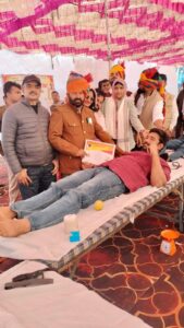 भीलवाड़ा-सनातन रक्षक अमर शहीद सुखदेव सिंह गोगामेड़ी की द्वितीय पुण्यतिथि के उपलक्ष्य में महाराणा प्रताप स्टेडियम जवाहर नगर में विशाल रक्तदान शिविर एवं नि:शुल्क परामर्श, जाँच एवं चिकित्सा शिविर श्री राष्ट्रीय राजपूत करणी सेना द्वारा आयोजित किया गया कार्यक्रम की शुरुआत सभी अतिथियों द्वारा पुष्पांजलि अर्पित कर किया गया कार्यक्रम में 523 यूनिट रक्तदान हुवा और सेकड़ो लोगो ने शिविर मे भाग लेकर सामान्य रोग,नाक कान गला,महिला रोग,आदि की जाँच करवाई इस अवसर पर हाथी भाटा आश्रम के संत व मुख्य अतिथि राष्ट्रीय कार्यकारी अध्यक्ष शीला शेखावत ,वरिष्ठ अथिति राष्ट्रीय उपाध्यक्ष योगेन्द्र सिंह कटार, अभय राज सिंह ,राजस्थान प्रदेश अध्यक्ष उजागर सिंह डाबला,भीलवाडा जिलाध्यक्ष बबलू सिंह ,भीलवाड़ा महिला जिलाध्यक्ष कल्पना राठौड़ महिपाल सिंह केलवद,मांडी बना,अवतार सिंह कोयल,दशरथ सिंह बिलिया,राजेंद्र सिंह सोलंकी,चंद्रभान सिंह,युवा समाज सेवी सतवीर सिंह साकरिया,पूर्व प्रधान करण सिंह बेलवा,महाराणा कुम्भा ट्रस्ट अध्यक्ष हेमेन्द्र सिंह डाबला,अभिभाषक संस्था के अध्यक्ष उम्मेदसिंह राठौड़ मंच संचालन हेमेन्द्र सिंह काछोला ने किया एवम् श्री राष्ट्रीय राजपुत करणी सेना की समस्त राष्ट्रीय, राज्य, जिला टीम और मातृ शक्ति व राजपूत समाज के युवा उपस्थित रहे