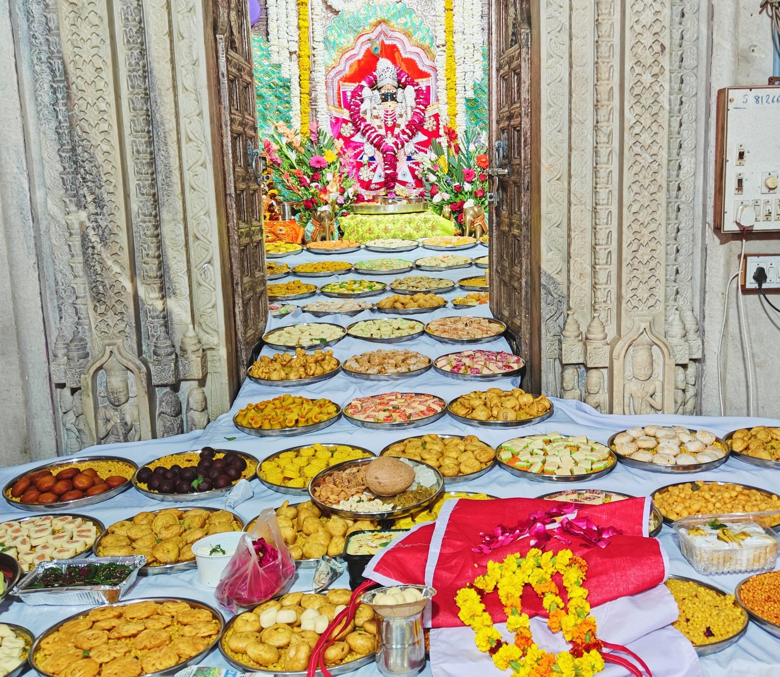 नकलक परिवार द्वारा चारभुजा के लगाया विशाल छप्पन भोग