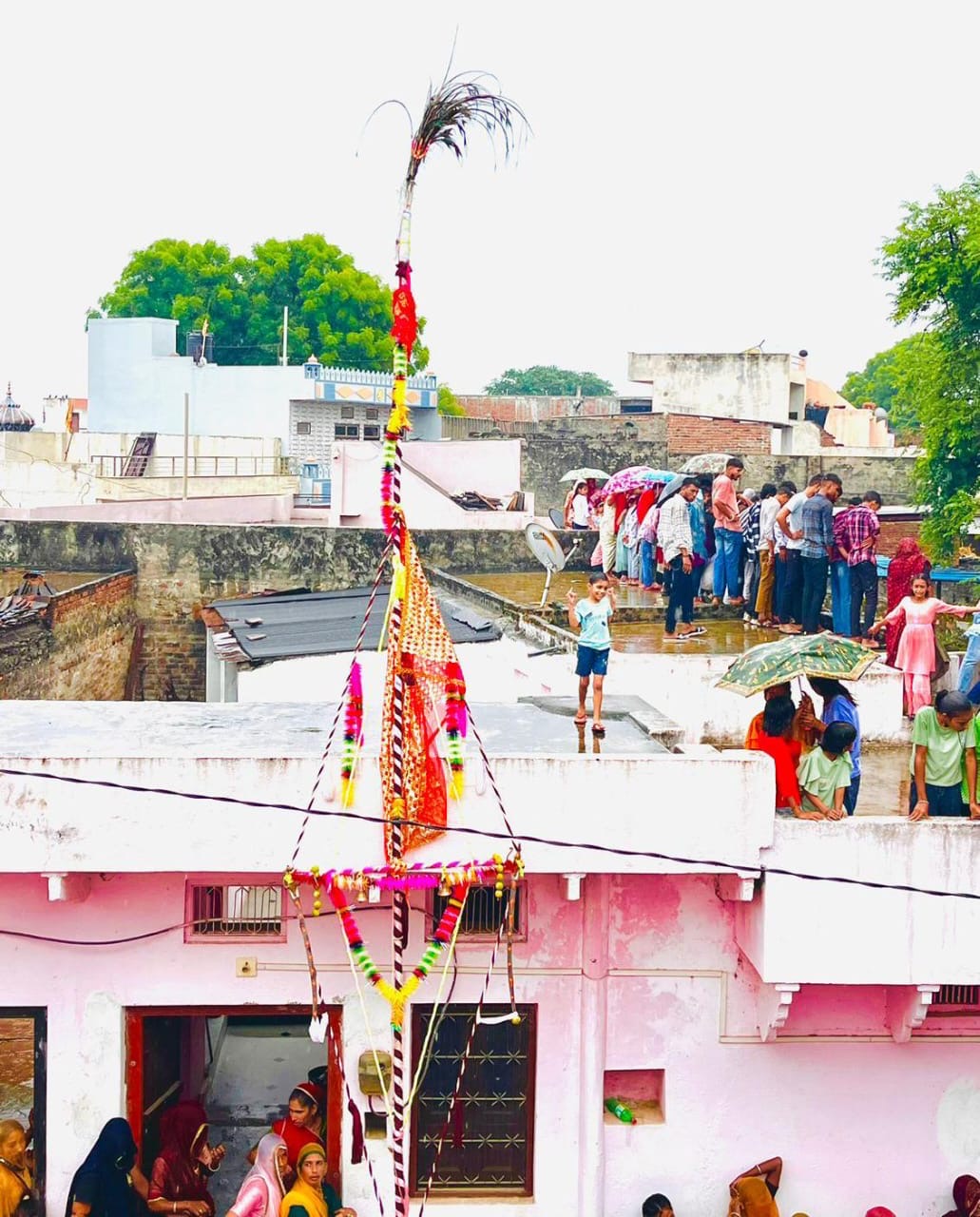 बड़ला में बारिश में माताजी के नेजा निकाल ज्वारा विसर्जन किया भीलवाड़ा